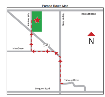 Route starts at Pilgrim Road just north of Mequon Road, traveling north on Pilgrim Road to Fond du Lac Avenue to Main Street; west on Main Street to Park Avenue; north on Park Avenue to end at Freistadt Road.